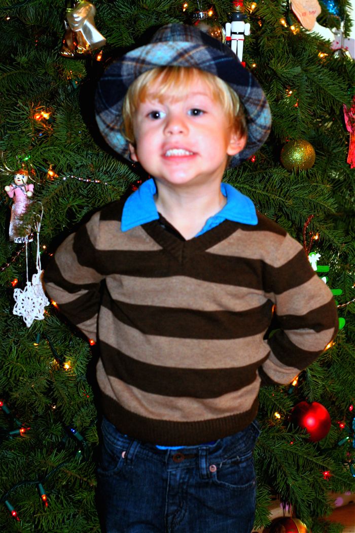 A picture in front of our tree before school.